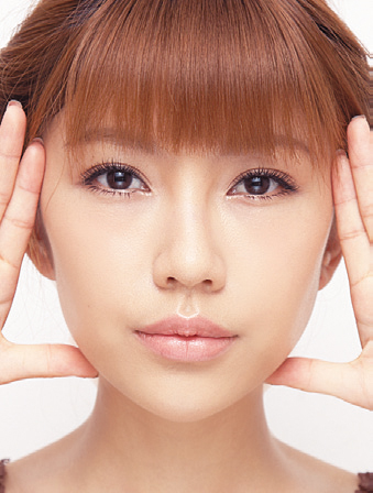 将大拇指回到下巴中央,沿下巴轮廓向两耳根提拉,并提升整个面部的肌肉。