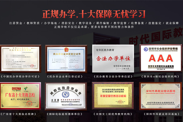 好的学校必然会收到社会以及政府的赞誉,时代美妆学校成立至今获取了无数荣誉;2002年获得中国民办学校办学许可证(培训学校必备资质之一)、民办非企业登记证(正规民办非企业等培训学校必备资质)。