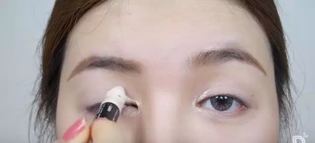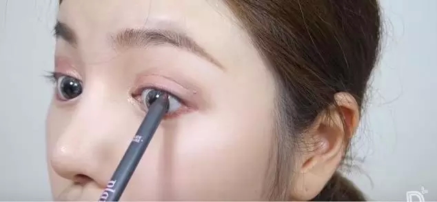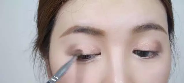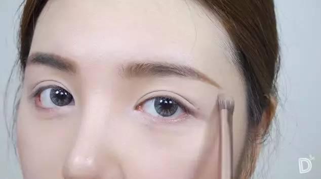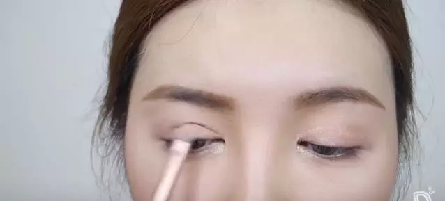 ▼然后用带珠光的眼影棒涂在眼角,用手向后晕开。