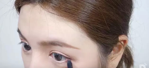 ▼然后用棕色的眼线笔画一层细细的内眼线,在眼尾处微微加厚,不拉长。